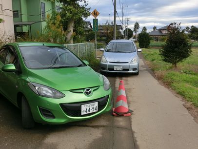 狭路で高齢者ドライバー同士が接触